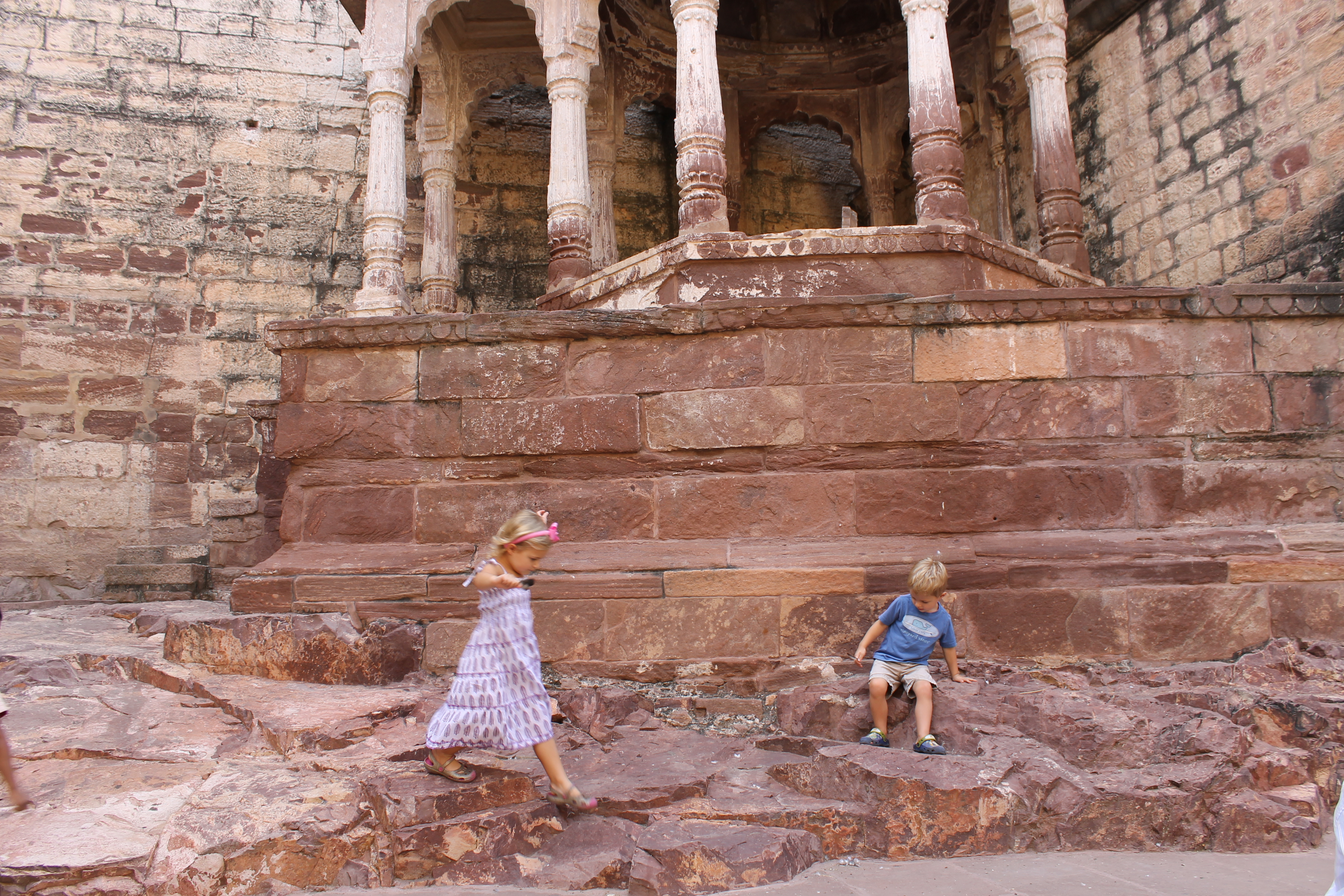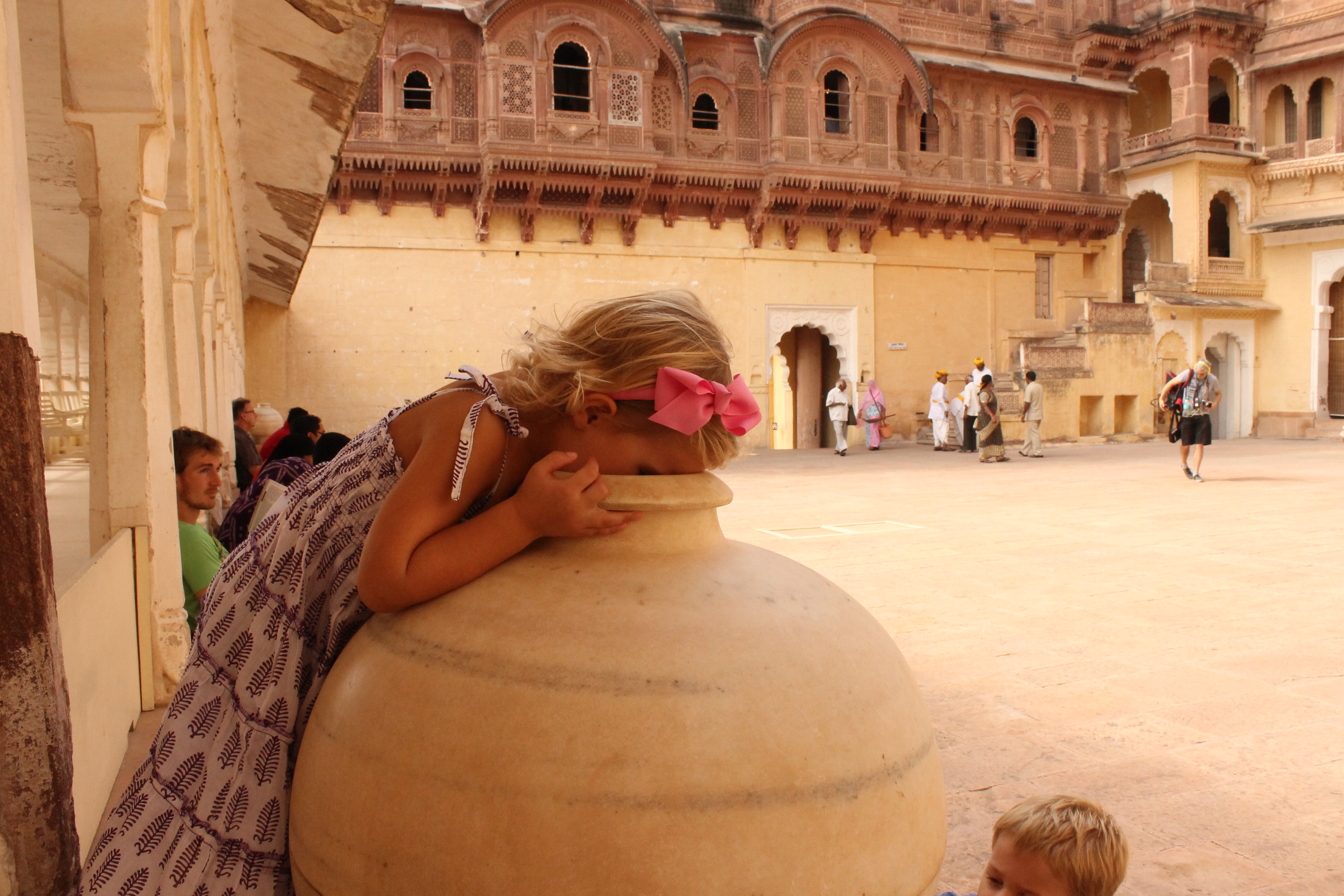 Not so with Jodhpur. Less than 2 hours in the air, and 15 minutes on the road and we were at our spectacular hotel, tucked in the tiny streets of the blue city. We woke up to a panoramic view of the Mehrangarh fort, and the kids had their own loft room upstairs. There was a pool, great food, and other kids to play with – which means this mini-vacation was a win on all fronts. Here are a few snaps from the weekend: