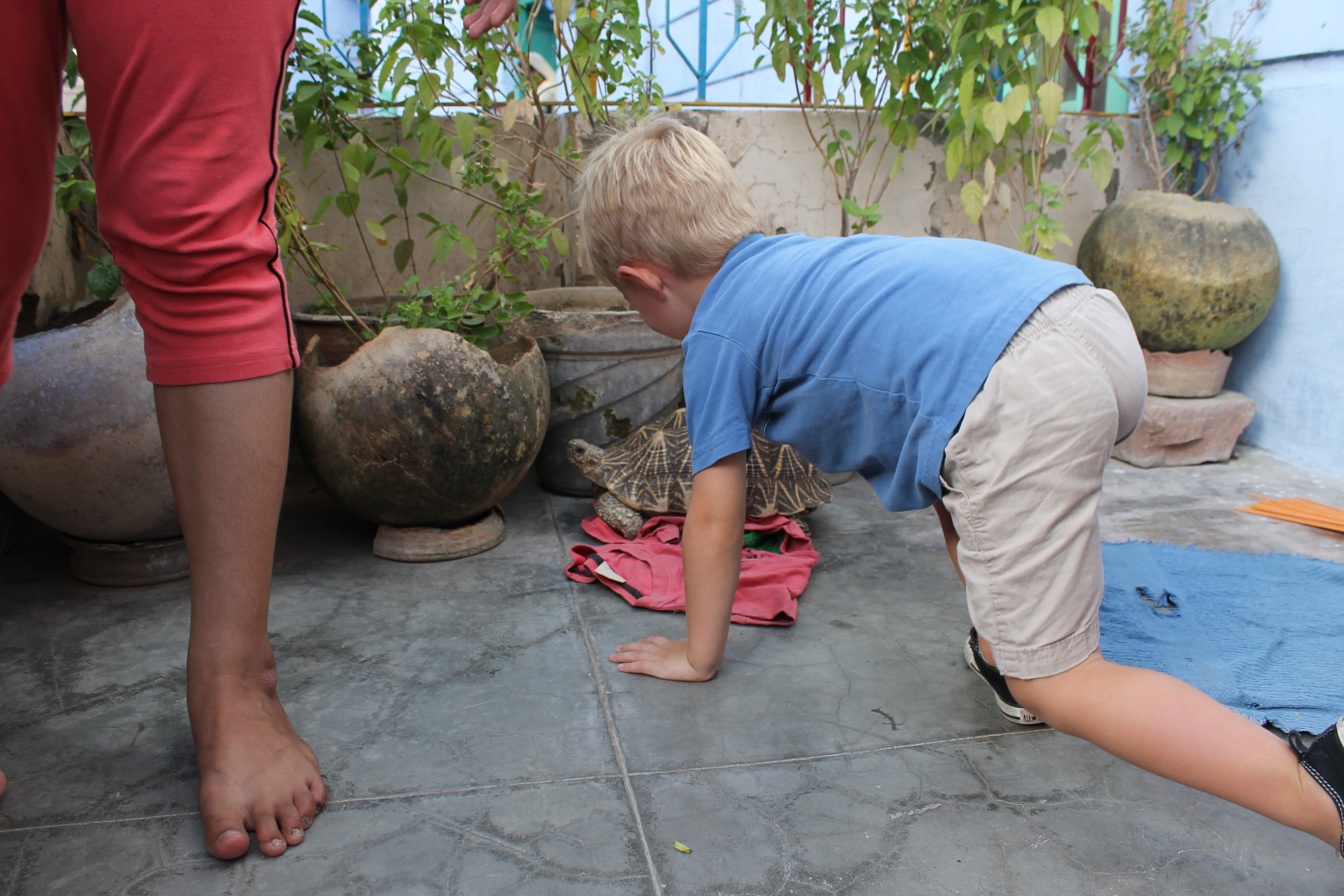 Some local kids insisted that we come to their house and meet their pet turtle.