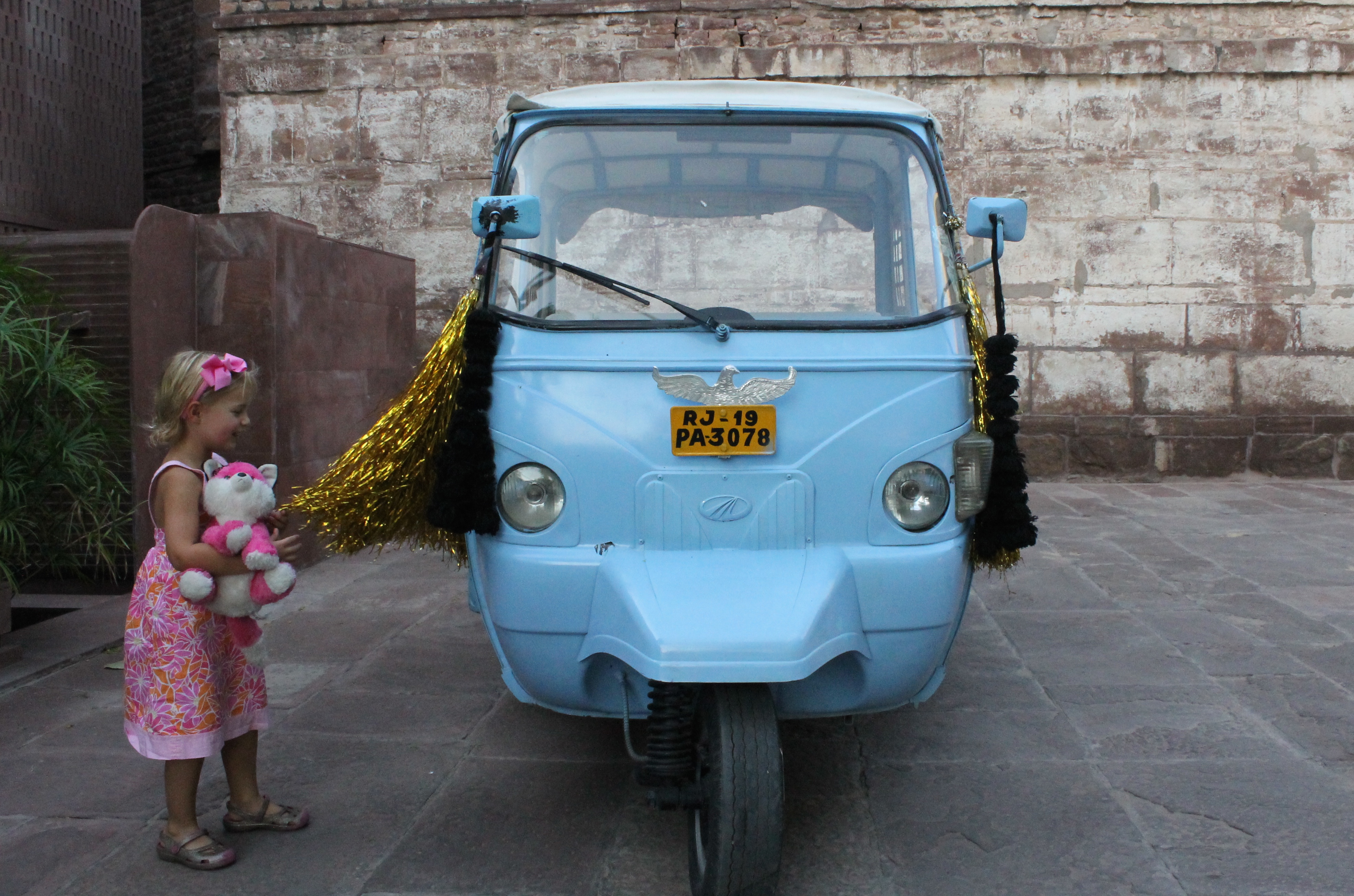 The hotel had its own blue auto-rickshaw. With gold tassles. I want one.