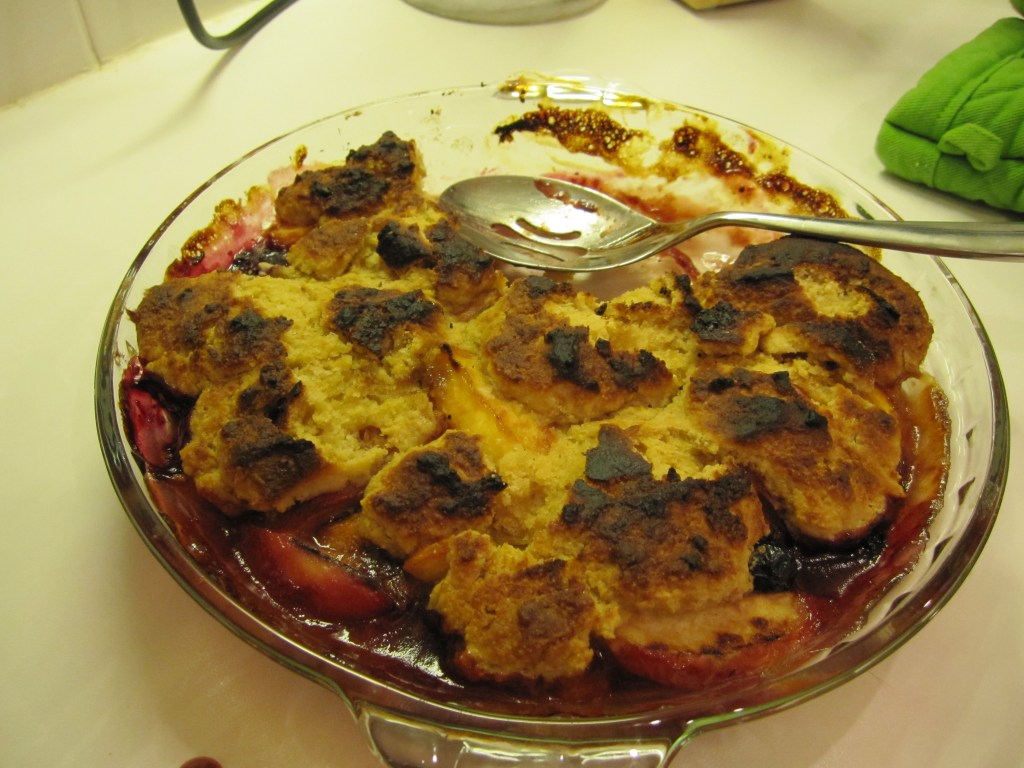 Notice, however, that the charred top did not render this dish of brown sugar, biscuits and bubbly fruit inedible. I think something that good would have to actually be in flames to give me pause.