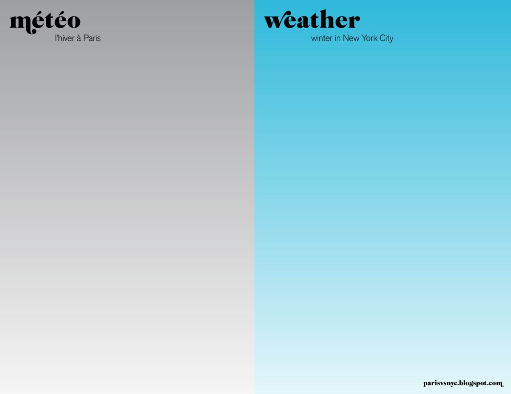 Oh Paris vs New York, how incredibly astute are your graphic interpretations of Paris compared to New York! Totally spot on. I think this site has been getting a fair amount of press lately, but I just couldn’t help but share some of my favorites here: