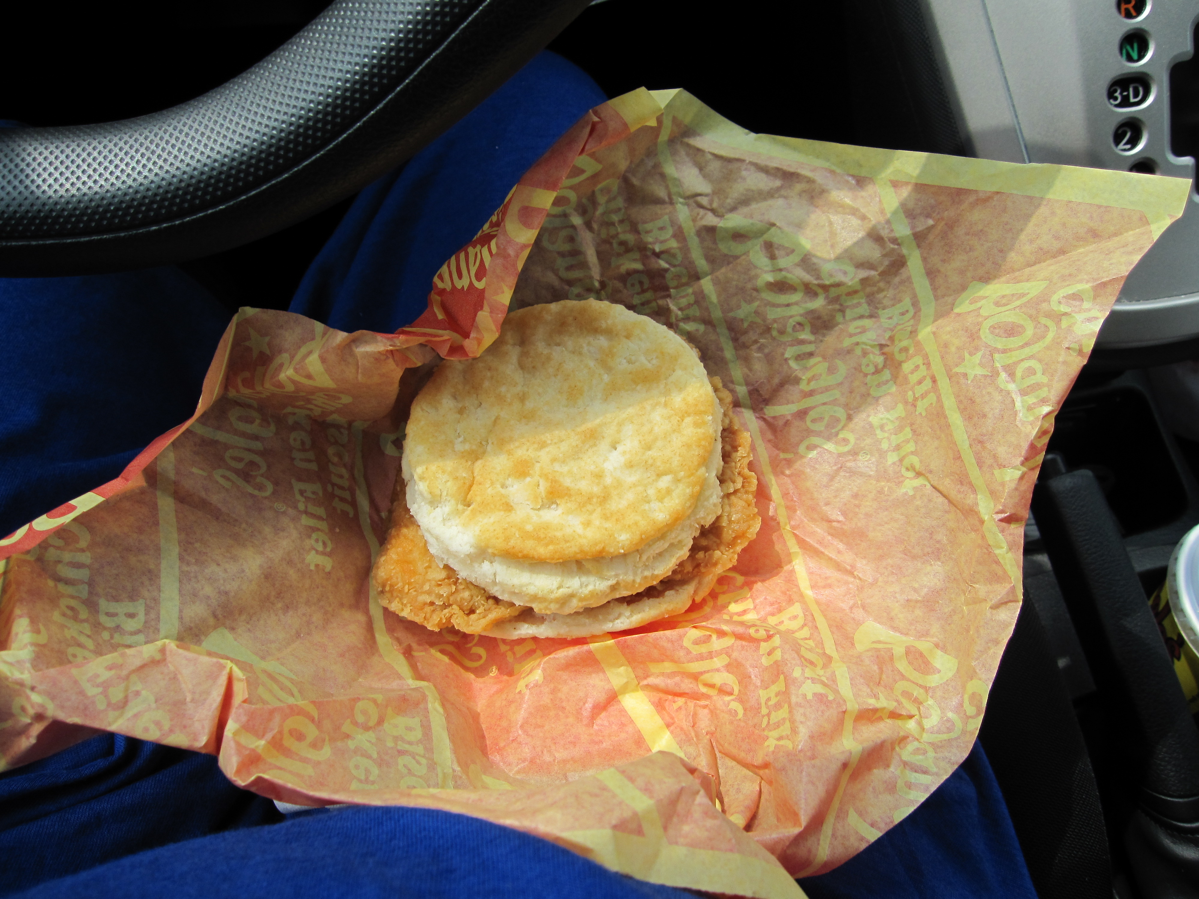 Yes, I said Bojangles. That ubiquitous fried chicken chain of the south. Which I have actually never been to before and which also actually turned out to be the highlight of route 74. If you know NC route 74, you know that’s not saying much, but the point is, fried chicken on a biscuit is almost always delicious– even at a sketchy looking fast food joint.