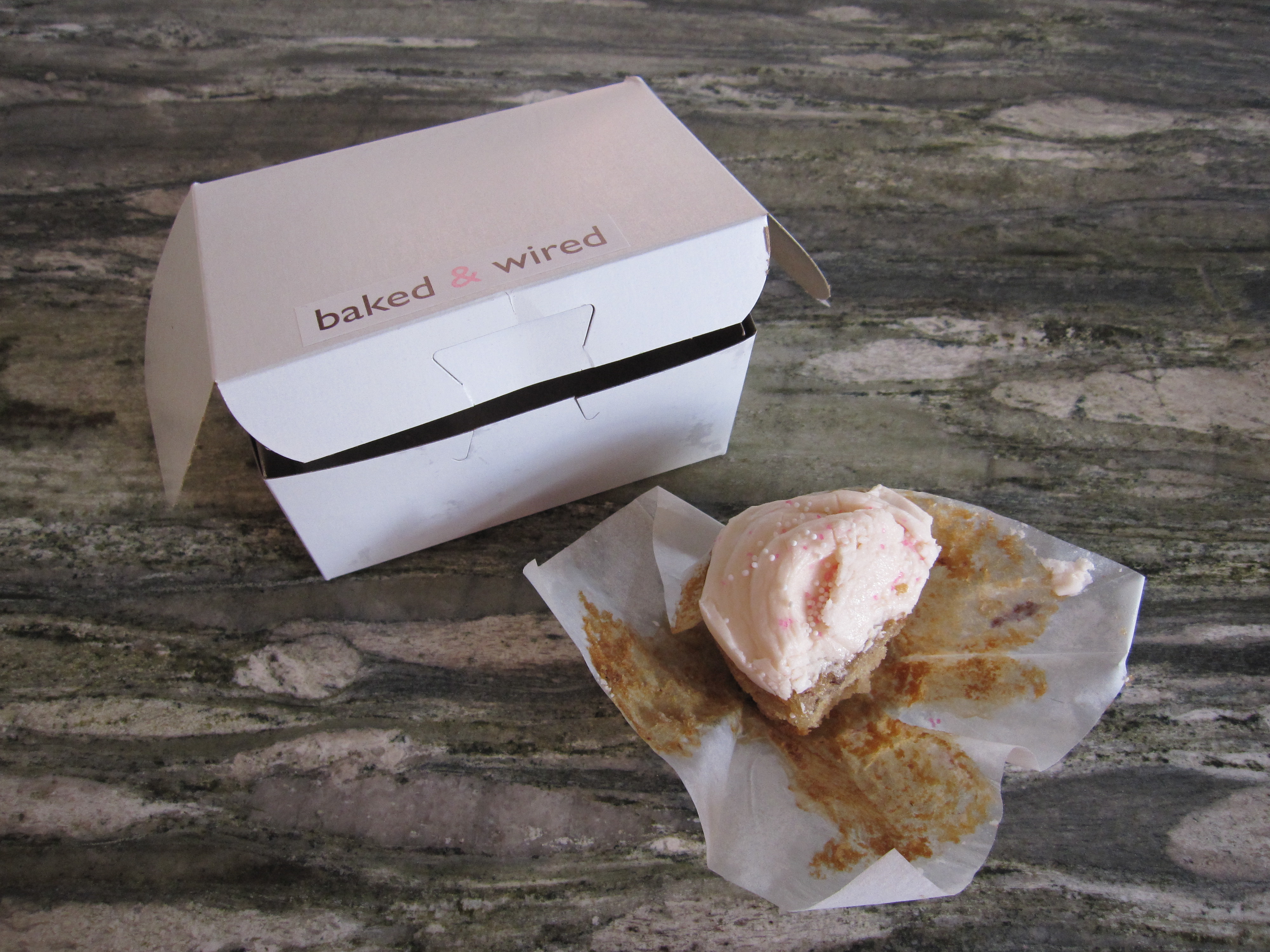 Me? I’ll be down the street having a real cupcake at Baked and Wired. A huge honking cupcake wrapped in a rustic parchment paper cup, stuffed with fresh strawberries or topped with chocolate icing so thick and smooth it could be mistaken for pudding. I’ll be shopping for homemade treats with names like “Chocolate Cupcake of Doom” and “The Unporked Elvis.” No mention of prestige ingredients (although I know they’re in there). No fussy decorations or perfectly piped frosting. Just a big messy hunk of love that shoots you back to the third grade and makes you wish your mom knew how to make these cupcakes instead of the crappy ones from the Betty Crocker box.