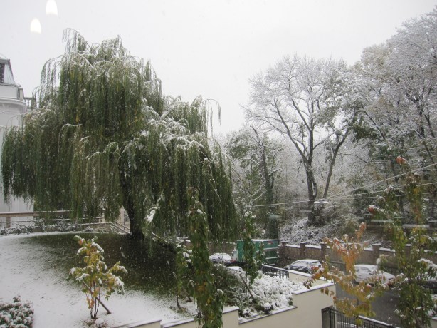 As everyone back home battens down the hatches for Frankenstorm, I’d just like to point out that it’s snowing here. In October. For the second time. Just sayin.
